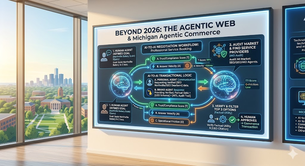 By 2027, “Shopping” will become “Orchestrating.” Instead of a consumer searching for “Best SEO agency in Detroit,” their Personal AI Agent will negotiate with your Brand Agent directly.