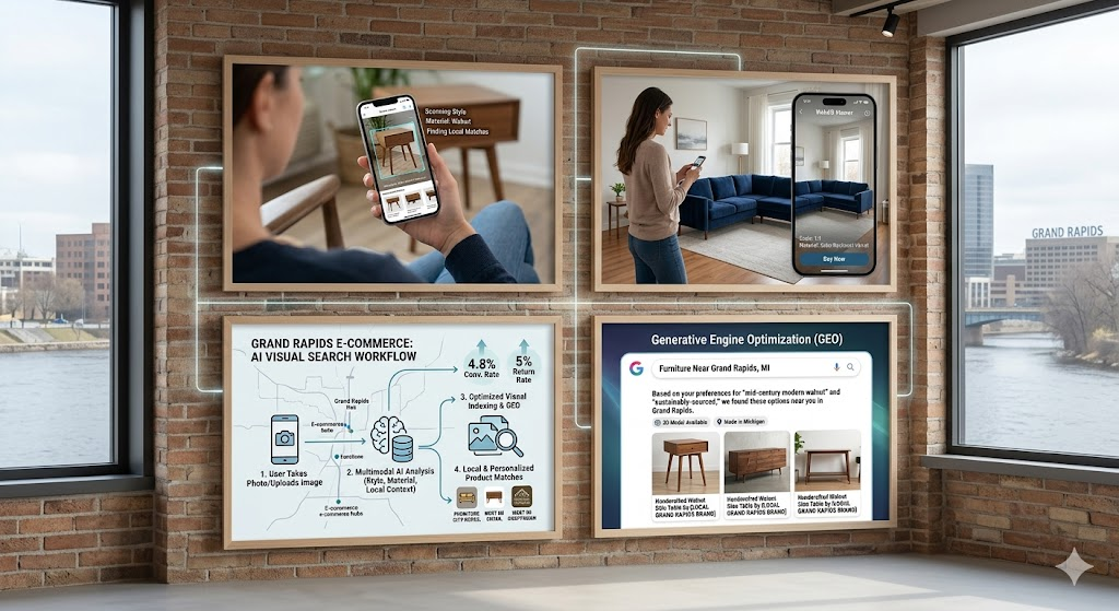 In 2026, the search box is becoming secondary to the camera lens. Multimodal AI allows a shopper in East Grand Rapids to take a photo of a vintage mid-century modern chair and instantly find a locally-manufactured match.