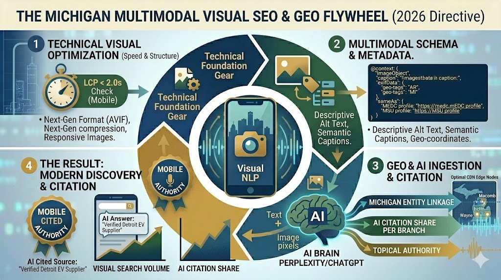 This post details the mandatory Multimodal Visual SEO Directive for Michigan brands, visualizing the integrated strategy required to capture visual intent and capture AI citations.